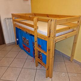 Vendo letto per bambini, il modello rialzato prodotto da Ikea. Le sue misure sono 180 x 90 e la sua altezza è di 110 cm. Completo di materasso e tendina con disegni di Cars.