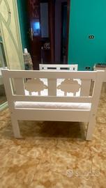 Vendo lettino originale Ikea con pecorelle, completo di materassino e toghe ortopediche in legno. Le misure del lettino sono: Lunghezza 1,66 cm, Larghezza 77 cm, Altezza 35 cm. Invece le misure del materassino sono: Lunghezza 1,60 cm, Larghezza 70 cm. Usato da mia figlia 1 anno circa, vendo lettino usato ma veramente nuovo, nessun difetto né estetico e né di comfort. Astenersi da perditempo, contattatemi solo se realmente interessati.
