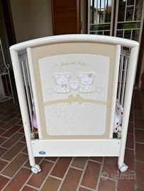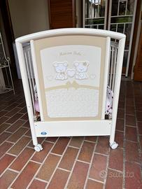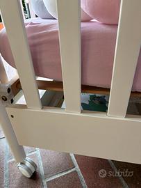 Lettino x bimbi con doghe in legno, sponde mobili( sali, scendi). Comprensivo di materasso . Lunghezza 130 altezza 100 profondità 70. Ritiro di persona in loco