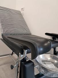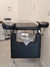 LETTINO GIN. DELUXE - reggigambe di qualità Robusta struttura in tubo rettangolare cromato. Schienale e poggiapiedi regolabili in altezza. Materassino in ecopelle lavabile, autoestinguente, colore nero. Portata: 110 kg. Fornito con bacinella in acciaio INOX Ø 31 cm e reggigambe. Dimensioni: 180x55xh 80 cm Seduta: 55x55 cm Fornito smontato. Istruzioni multilingue: GB, FR, IT, ES, PT, DE, GR