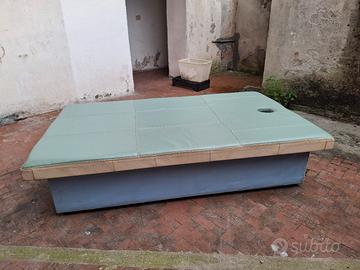 Lettino per massaggi imbottito con superficie in simil pelle. Dimensioni: lunghezza: 2 m larghezza: 1.20 m diametro foro: 15 cm Prezzo trattabile