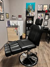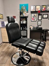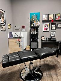 Lettino per tatuaggi regolabile, puo essere alzato e abbassatk tramite un semplice pedale. Schienale reclinabile, le gambe si possono abbassare e si puo ruotare su se stesso. Molto comodo, usato come nuovo, vero affare. Ritiro sul posto