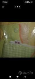 Lettino Picci con corredo di rivestimento giallo e verde. Legno colore naturale come mostrato in foto