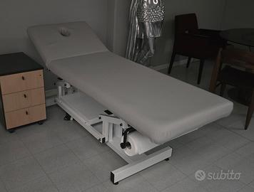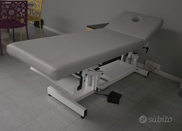 Lettino professionale per massaggio e fisioterapia in condizioni eccellenti. Modello top di gamma con regolazione dell'altezza tramite pratico comando a pedale. Colore: Grigio moderno con struttura bianca. Caratteristiche: Testata reclinabile con foro viso integrato. Struttura: Base a X ultra-stabile, ideale per trattamenti dinamici e manipolazioni. Extra: Supporto portarotolo integrato. Rivestimento in ecopelle di alta qualità, facilmente igienizzabile. Perfetto per chi cerca il massimo comfort operativo.