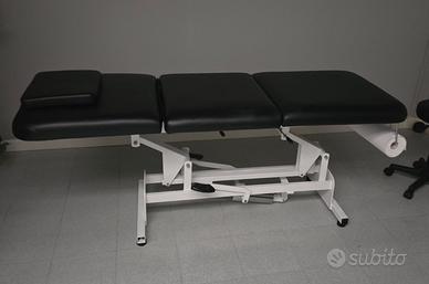 Vendo lettino professionale a 3 sezioni con sollevamento idraulico a pedale. Non necessita di prese elettriche, offrendo massima libertà di posizionamento nello studio. Regolazioni: Altezza variabile tramite pompa idraulica; schienale e sezione gambe regolabili manualmente. Colore: Elegante nero professionale. Comfort: Imbottitura comfort con cuscinetto poggiatesta incluso. Stato: Ottime condizioni, meccanismo fluido e silenzioso. Completo di portarotolo. Ideale per estetica, tatuaggi o massaggi fisioterapici.