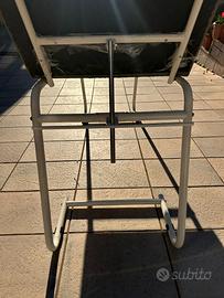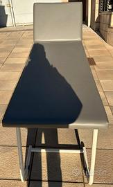 Lettino regolabile con schienale inclinabile, struttura solida in metallo verniciato e rivestimento in similpelle grigia.