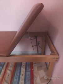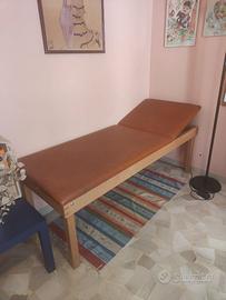 Per pensionamento e termine attività di studio medico, vendo lettino sanitario a due sezioni, in ottime condizioni. Il lettino è totalmente in legno massello; con l'imbottitura in pelle; ha lo schienale regolabile meccanicamente.