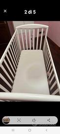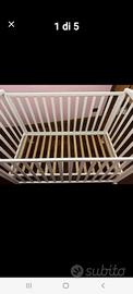 lettino con sbarre in legno compreso di materasso