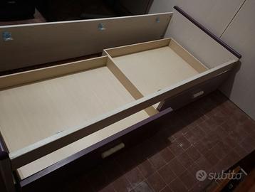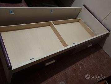 Struttura in legno con 2 cassettoni sotto e rete in doghe con materasso singolo Memory