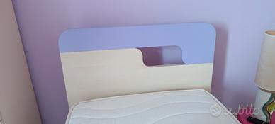 Lettino singolo compresi di materasso 190x80, piedi in acciaio e testata bicolore (lilla).