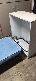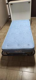 Lettino pieghevole completo di materasso da una persona, retrattile in un contenitore (mobiletto ). Usato pochissimo forse 4/5 volte in un appartamento al mare. Il mobiletto è dotato di rotelline per il facile spostamento.