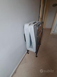 Lettino singolo richiudibile, pressoché nuovo, usato pochissimo, con struttura della rete in doghe in legno di faggio e materasso pieghevole. Ritiro e trasporto a carico dell'acquirente.