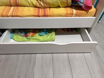 Letto singolo bambino con cassetto porta oggetti Doghe in legno Compreso di materasso Sponda anticaduta rimovibile