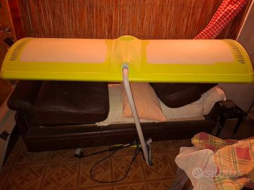 Si tratta di un solarium domesticoAlisun Salsa. È progettato come lettino abbronzante compatto e mobile, dotato di ruote per facilitarne lo spostamento.Utilizza lampade o tubi abbronzanti per l'abbronzatura artificiale. a struttura è pieghevole o richiudibile per occupare meno spazio quando non in uso.