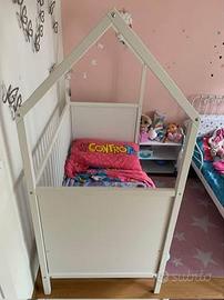 Questo lettino Stokke, ormai fuori catalogo, presenta la possibilità di posizionare le doghe a due altezze differenti, più alte o più basse. Inoltre le sponde si smontano molto facilmente, dando la possibilità di farlo diventare un letto da 0 a 4 anni.