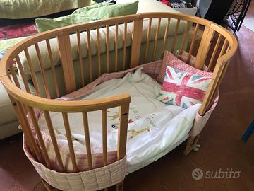 Vendo lettino marca Stokke ovale in legno. Buone condizioni. Disponibilità anche di piumino e biancheria abbinata usata davvero poco.