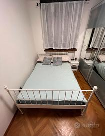 salve cedo letto 1 piazza e mezza in ferro bianco misura 140×200 con doghe e materasso da 20cm. quasi nuovo ortopedico, anallergico, antiacari ce una testiera da montare in piu ecc