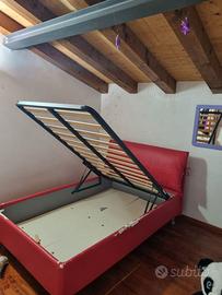 Regalo letto 1piazza e mezza in ecopelle la quale si è rovinata si può sostituire perché è fissata con velcro. È completo di materasso alto, molto comodo.