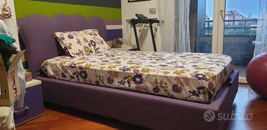 letto 1 piazza e mezza con contenitore misure 120x190 completo di materasso e copriletto coordinato