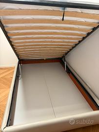 Praticamente nuovo, completo di materasso nuovo. Con cassettone porta oggetti come da foto. Misure totali 210 x 130