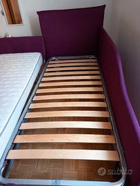 -completato con rivestimento che chiude totalmente il letto e lo rende un divano con i cuscini quadrati in coordinato.