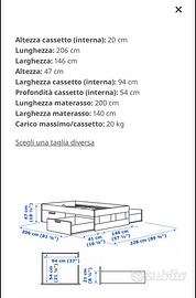 Letto 140x200, bianco, 4 cassetti, con doghe in legno, in ottime condizioni. Compreso materasso 140x200 ( usato da 4 anni )
