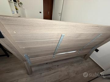Vendo struttura ikea sultan (letto alla francese dimensione 140x200) effetto legno color tortora completo di doghe in legno in condizioni ottime.