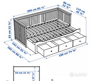 Divano letto modello Hemnes Ikea + 2 materassi in schiuma memory spessi 10 cm l'uno. Da letto singolo si apre a letto matrimoniale. Usato pochissimo.