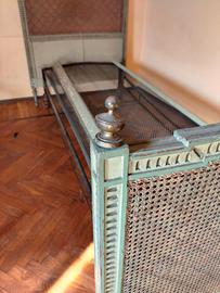 letto fine 700 singolo in legno e midollino verde acqua chiaro