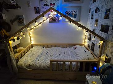 Il letto in questione è della primavera 2021 è in perfette condizioni (misure h170 largh 90 lungh 200), può ospitare due materassi uno standard (in foto) 80 x 190 e uno nel cassetto sottostante (misure 75 x 180), il cassetto è munito di doghe. Per qualsiasi foto dettagliata resto a disposizione e se interessati regalo le varie luci che vedete in foto.