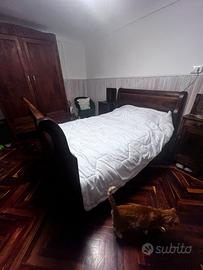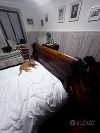 Letto a barca a una piazza e mezza con 2 comodini, restaurato.