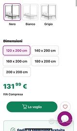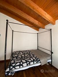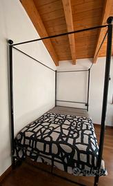 Letto a baldacchino a una piazza e mezza, nero di metallo verniciato, 120x200 Usato 1 anno, buone condizioni