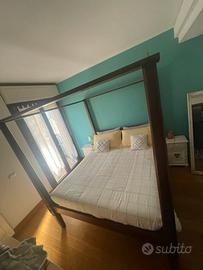 Letto a baldacchino mis 180x210 in legno con doghe in legno incastonate e rimovibili singolarmente. Solo ritiro a mano no consegna , da ritirare entro il 16/03. No perditempo .