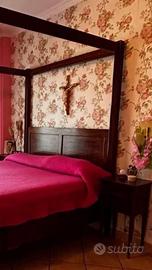 Letto a baldacchino, in legno di castagno noce.