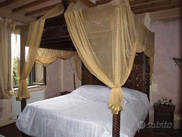 letto matrimoniale baldacchino in legno tek antico 200x200 intaglio origine India , periodo 1800