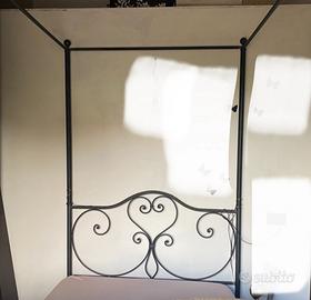 Letto a baldacchino da una piazza e mezzo in materiale simil ferro battuto . Usato in ottime condizioni . Non sono compreai materassi e rete