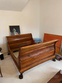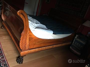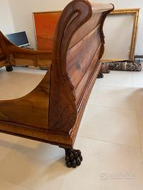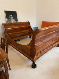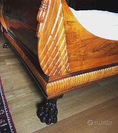 Letto a barca Impero, completamente in Noce massiccio , no compensato. Misura Materasso 200x175 cm