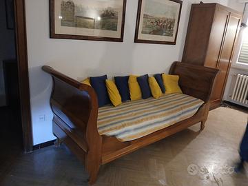 Letto a barca singolo in legno di noce Realizzato a mano da falegname Ottimo stato