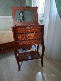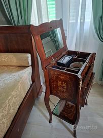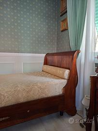 Vendo tipoco letto a barca periodo ‘800 con comodino, eredità di famiglia. Entrambi in perfetto stato in quanto periodicamente restaurati per mantenerne il valore intatto nel tempo. Il letto viene venduto già dotato di rete e materasso (memory), entrambi su misura e acquistati 3 anni fa. Il letto é facilmente smontabile per il trasporto (le testiere si sganciano dalle travi orizzontali) Dimensioni: 107x216 cm, altezza testiere 101 cm Letto (con rete e materasso in omaggio): 250€ Comodino: 150€ Letto + comodino: 350€
