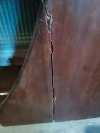 letto a barca in noce modificato ad una piazza da restaurare.le sponde , originariamente lunghe 1,70 hanno una prolunga di 15 cm aggiunta in seguito.Presenta una rottura visibile in foto e ,molto probabilmente quando é stato smontato una parte della prolunga si é scheggiata ed é visibile in foto.No spedizione ,possibile ritiro presso Mombarcaro CN
