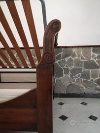 Vendo letto a barchetta in noce primi novecento con baule e rete a doghe 120x200
