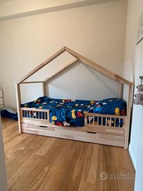 Letto a Capanna 90x190 - Colore : Legno naturale , Cassetto : 1 cassettone contenitore