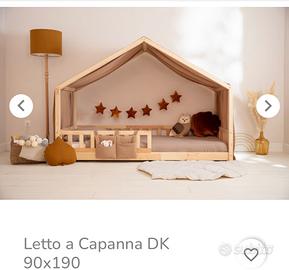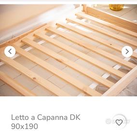 Letto a capanna stile montessoriano, in legno di pino naturale, barriere h 24 cm rimovibili e intercambiabili. Da montare. Materasso non incluso. Marca: Mon Lit Cabane