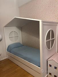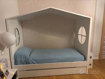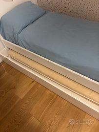 Il letto è in legno bianco di una nota marca di arredamento francese. Ha un cassettone sotto per un ulteriore materasso. E' in buone condizioni ha due piccoli graffi nella parte antistante