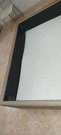 vendo letto a cassettone comprato 6 anni fa... purtroppo come da foto la testiera in ecopelle si e spellata in alcuni punti, sulla rete in un punto si è sollevata la vernice e poi nello smontaggio si è spezzata una doga ma si sostituisce con un paio d'euro.