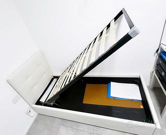 Letto singolo con contenitore con rete standard (80x190). Rivestito totalmente in ecopelle bianca. Nessuna scucitura, nessun taglio o macchia. Tenuto in ottime condizioni.