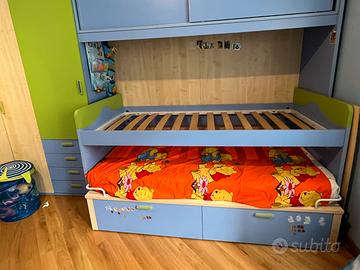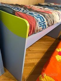 Struttura letto 2 letti singoli . Tutto con ruote e blocca ruote , sia i Letti che i cassetti .