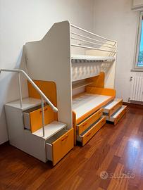 Il letto sotto è estraibile con ruote + 4 cassetti sotto il letto.
