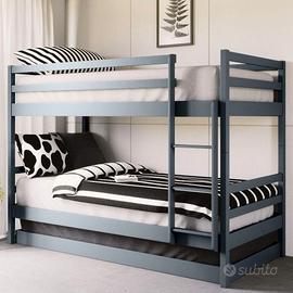 Letto a castello estraibile con 3 letti 90 x 190 cm in legno grigio adatto a tutte le tue esigenze.