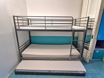 Letto a castello in metallo 3 posti Ikea Terzo letto estraibile Ottime condizioni, non è mai stato smontato o spostato da dove si trova ora Comprensivo di 3 materassi anch'essi in ottime condizioni